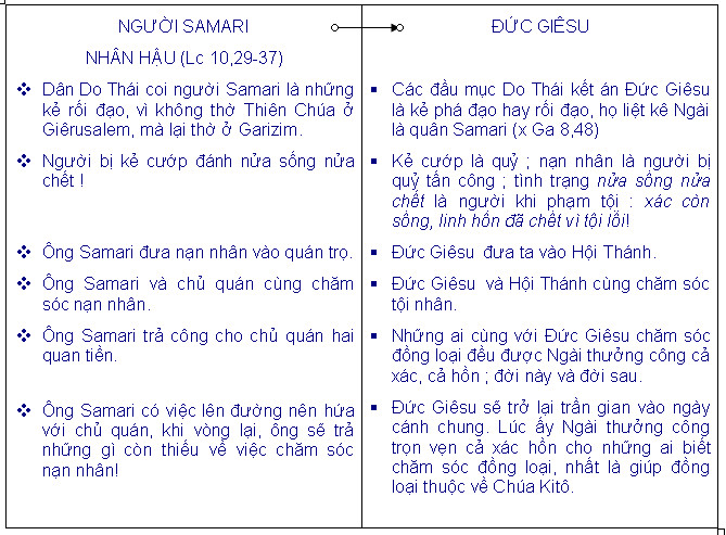 theo bắt chước. Ta hãy so sánh người Samari nhân hậu với Đức Giêsu :