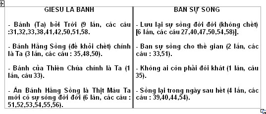 Thịt Máu Ta, ăn, không đói khát, được sống lại, sống đời đời”, là Ngài chủ tâm nhấn mạnh và đề cao giá trị Bánh của Ngài ban ; còn